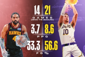 文森特出场14次,场均3.7分,投篮命中率33.3%,三分25%,罚球100%(湖人时期,场均4.8分,命中率34.6%,三分36.9%)。