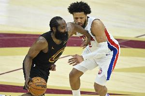 本场比赛,米切尔缺阵,阿伦在一次膝盖对撞中受伤。哈登状态一般,出战35分钟17投5中,三分9中2,罚球6中6砍下18分6篮板7助攻,出现5次失误,正负值-6。