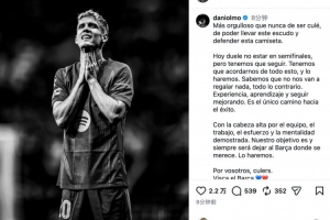 体育资讯4月15日讯 欧冠1/4决赛次回合,巴萨客场2比1击败马竞,最终以总比分2-3出局。赛后,奥尔莫社媒发文誓言带巴萨重回应有位置。