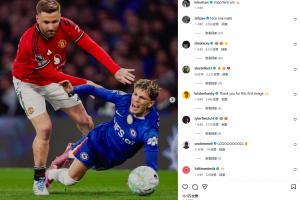 卢克·肖赛后晒照首图为与加纳乔同框,后者狼狈倒地