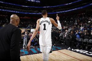 本场比赛文班亚马开局状态一般,失误偏多,但下半场他状态复苏,第三节连续命中三分,8记三分追平生涯纪录,最终帮助球队赢下强敌。